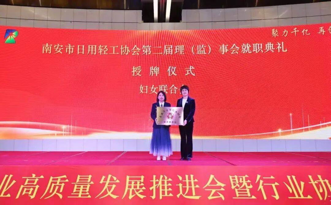 南安市日用轻工工业高质料起色推动会暨行业协会第二届理(监)事会就职仪式上,举办南安市日用轻工协会妇联设立典礼,南安市妇联党组书记、主席林文锋为南安市日用轻工协会妇联授牌轻工。